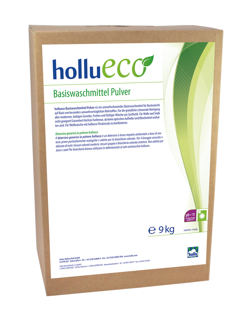 Környezetbarát mosópor színes főmosáshoz. A „die Umweltberatung” osztályozása szerint környezet- és egészségbarát. Nem tartalmaz semmilyen optikai és egyéb fehérítőt, így nem fakít, a kelmék a színüket garantáltan megtartják! Kombinálható hollueco folttisztító spray-vel a színes ruhanemükhöz és hollueco folttisztító sóval a fehér textíliákhoz.