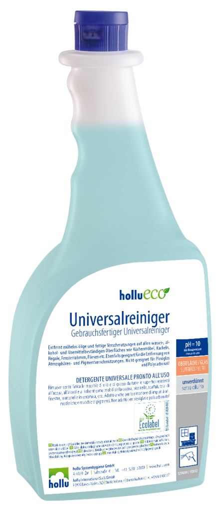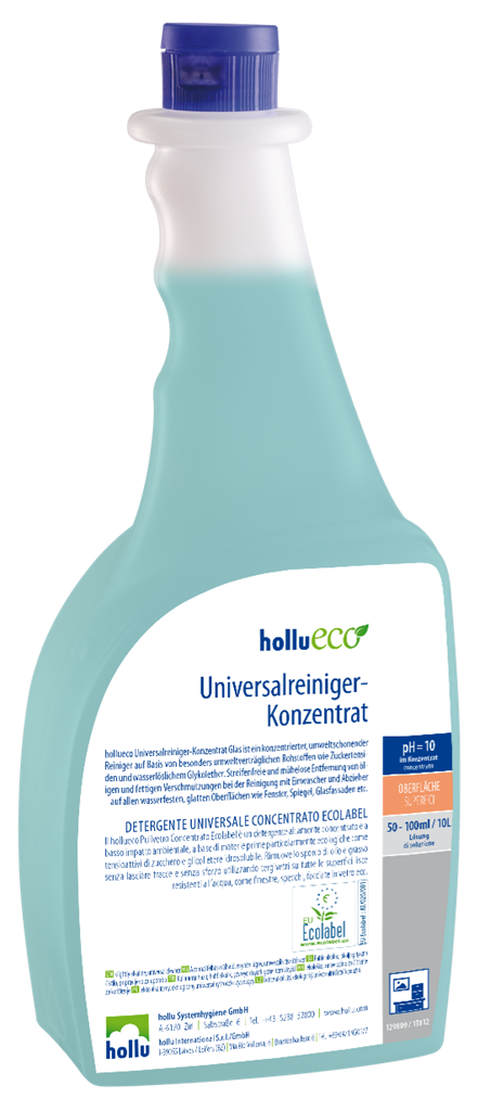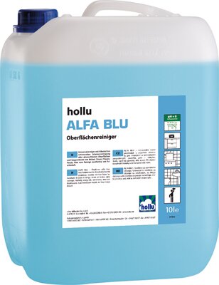 A hollu ALFA blu egy univerzális, alkoholos tisztítószer koncentrátum minden vízálló felület csíkmentes tisztításához. Jó zsíroldó tulajdonságokkal rendelkezik, gyorsan és rendkívül takarékosan használható. Könnyűszerrel távolít el mindenfajta szennyeződést, mint: olaj, zsír, zsíros korom, ujjlenyomat, légszennyezettségből adódó lerakódások, kenőcsmaradványok, friss tollvonások.