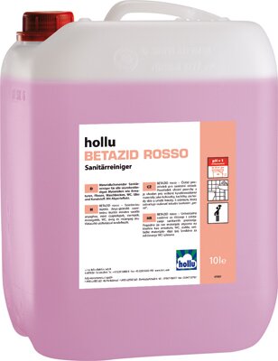 A hollu BETAZID ROSSO sósav-, kénsav-, foszforsav és klórmentes savas tisztítószer, amely kiválóan alkalmas a szaniter területek mindennapi, általános tisztításához. Kíméletesen tisztítja a vizes helyiségekben található felületeket, mint pl. króm, porcelán, műanyag, saválló csempe és zománcozott berendezések. Könnyedén oldja a víz- és húgykőmaradványokat, mész- és cementfátyolt, rozsdát, szappan- és bőrzsír-lerakódásokat. Friss illatot hagy maga után és csíkmentesen szárad.