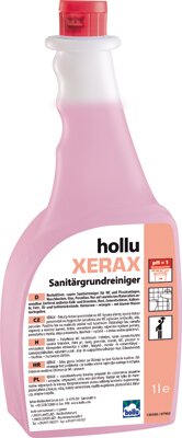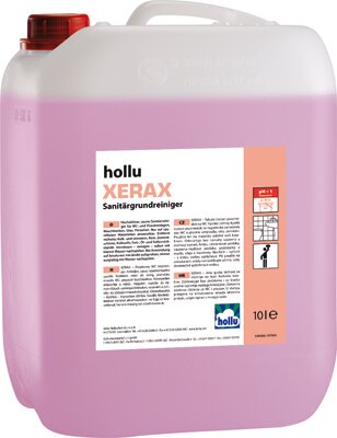 A hollu XERAX egy rendkívül erőteljes foszfor- és szulfátsav bázisú szaniter-tisztítószer, speciális tenzidekkel. Sósavat, ecetsavat és másfajta, problémákat vagy korróziós károkat okozó illékony savakat nem tartalmaz. Magas viszkozitása miatt a függőleges felületeken is jól tapad, ennek köszönhetően hatását jobban kifejti. Gyorsan feloldja a vízkőlerakódásokat és az egyéb extrém szennyeződéseket, mint víz- és húgykövet, rozsda- és cementfátylat, bőrzsír-, olaj-, zsír- és szappanmaradványokat. Segítségével a WC-k higiénikusan és tisztán tarthatóak.