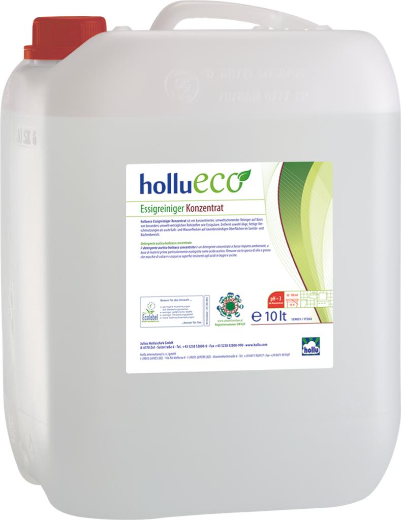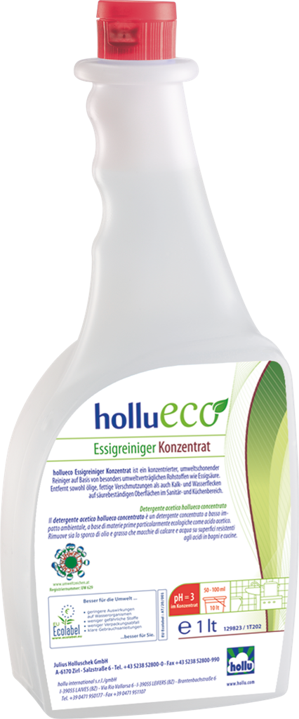Környezetbarát ecetes tisztítószer-koncentrátum. Minden saválló felületre a szaniter- és konyhai területeken. Eltávolítja az olajos és zsíros-, valamint a légköri szennyeződéseket, a vízkő- és a vízfoltokat. Savra érzékeny anyagokhoz, például márványhoz vagy alumíniumhoz nem alkalmas.