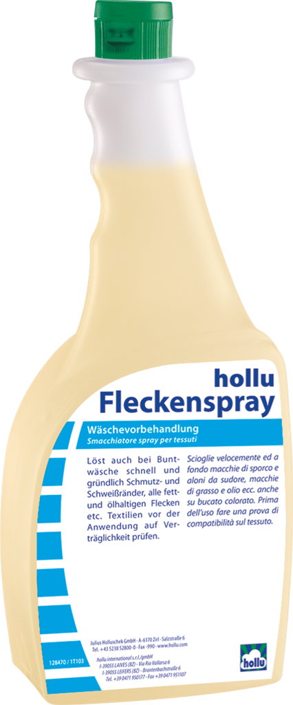 A hollu Fleckenspray folttisztító spray minden fajta textílián alkalmazható a foltok előkezelésére. Gyorsan és alaposan eltávolítja a kosz- és izzadságfoltokat, zsír- és olajtartalmú szennyeződéseket (pl. motorolaj, szószok, rúzs, filctoll, stb.). Minden hőmérsékleten, bármilyen vízkeménység esetén használható. Mivel nem tartalmaz fehérítőt, színes anyagokon is problémamentesen használható. Az előírásoknak megfelelő használat esetén nem károsítja az anyagokat.